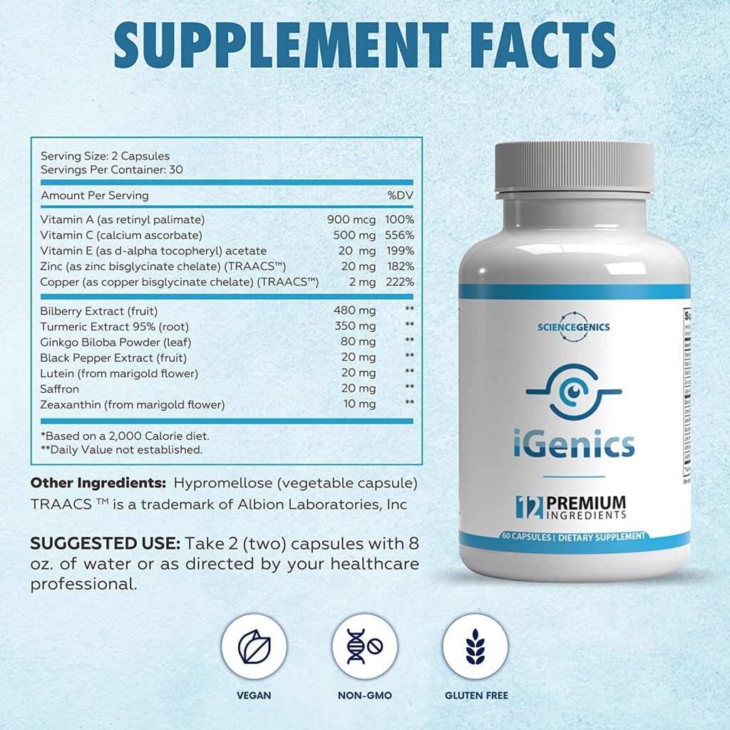 All of iGenics‘ ingredients, including bilberry, lutein, and zeaxanthin, are widely used in dietary supplements and have undergone extensive research. They are well-tolerated by healthy individuals and do not cause serious side effects when taken in the recommended doses.